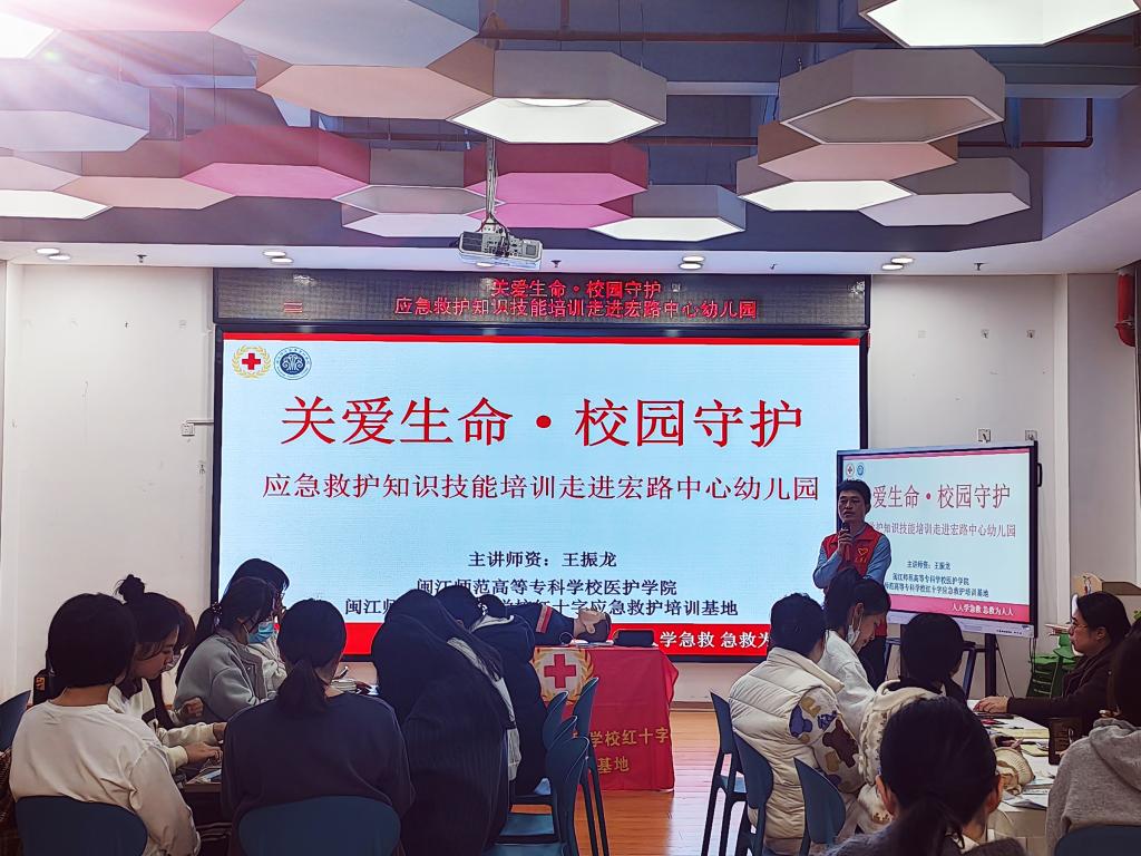 12月17日下午,医护学院康复教研室党支部与助产教研室党支部组织党员志愿者,走进福清市宏路中心幼儿园,开展“关爱生命,校园守护”急救知识技能专题培训。