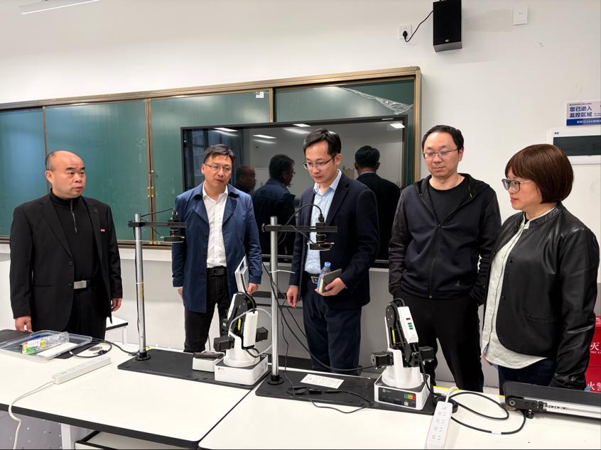 座谈会结束后,调研团队实地参观了大数据与人工智能学院的实验室。朱发财对该学院在人工智能教学科研平台建设、实践教学条件等方面的工作给予了高度肯定。双方表示,将以此次交流为契机,进一步加强沟通联系,深化合作内涵,共同推动两院事业实现高质量发展。