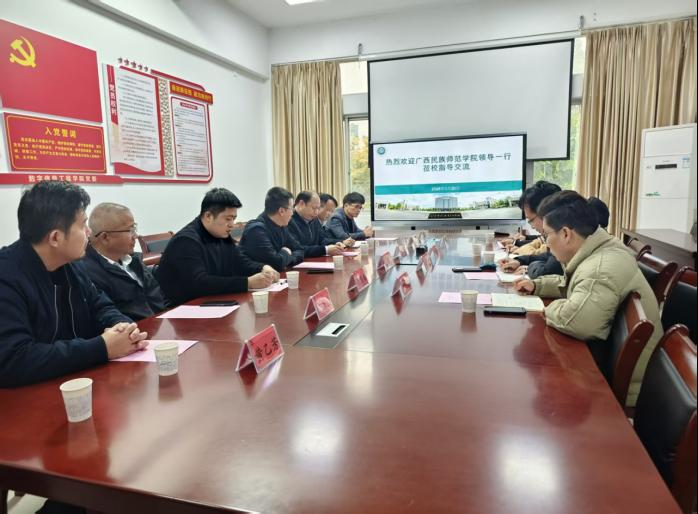 1月20日下午,广西民族师范学院发展规划与质量保障处处长王鹏飞、教务处处长易其顺带领教务处、数学与计算机科学学院相关同志莅临我校开展了深入的调研交流活动。数字信息工程学院院长朱发财、党委副书记(主持工作)郭晓莹及相关同志热情接待了来访嘉宾。