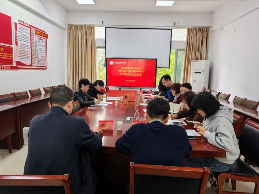 2月27日下午,数字信息工程学院党委领导班子召开2025年度民主生活会。校党委委员、副校长江柳青,校党委委员、组织部部长马梅铃到会指导,会议由院党委副书记(主持工作)郭晓莹主持,院领导班子成员及全体院党委委员参会。