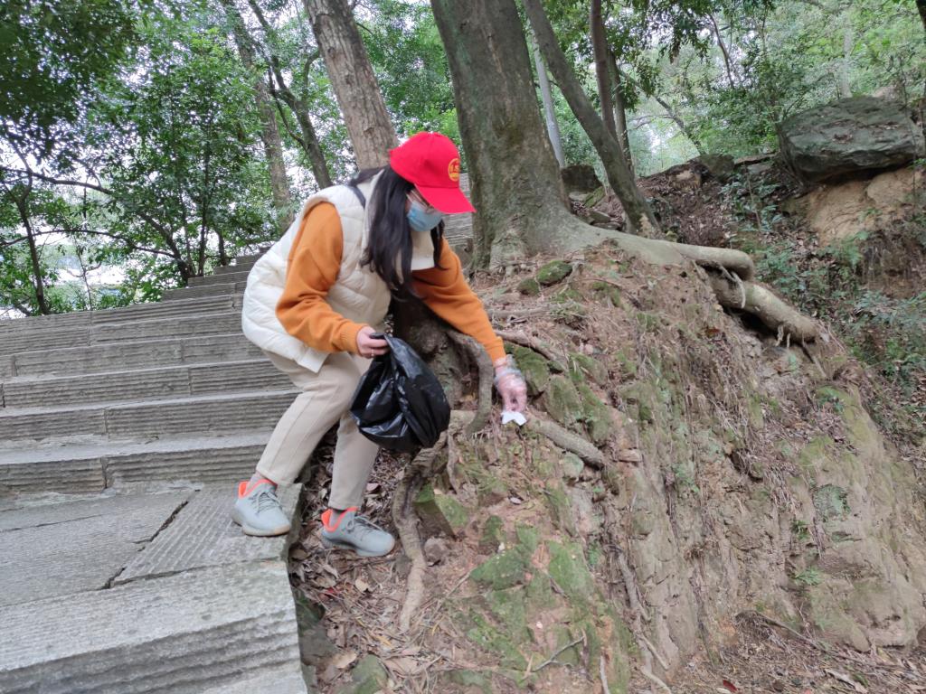 鼓山风景区游客众多,到达鼓山山脚下,公共基础部党支部志愿服务队成员们就开始忙碌起来,大家穿戴好红色的志愿者服装,拿着事先准备好的垃圾袋、手套等工具,发扬不怕苦、不怕脏的传统美德,弯腰认真地捡拾登山道上的垃圾,红色的身影穿梭在石阶古道上,一步一个台阶,几步一个弯腰,捡起的是垃圾,留下的是一片干净的鼓山林荫道。努力为人民群众营造一个干净舒适的游玩环境。