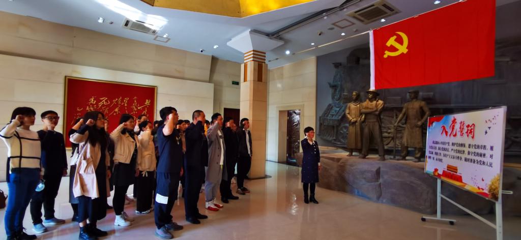 最后一项流程是重温入党誓词仪式。在烈士纪念馆序厅,系党总支书记江柳青带领全体党员,面对鲜红的党旗,举起右手,以洪亮的声音重温了入党誓词。青山默默、誓言铮铮,党员们满怀激情的宣誓声让现场所有人都深受感染。