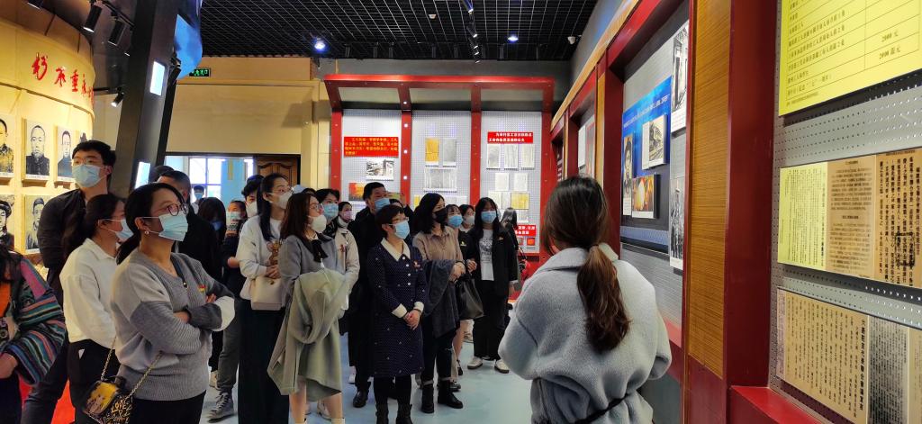 第二项流程是跟随讲解员参观林祥谦纪念馆。在纪念馆内,大家认真地观看馆藏的图文影像资料,聆听讲解员介绍林祥谦烈士短暂却璀璨的一生。一幅幅珍贵的照片、一个个逼真的场面,真实再现林祥谦烈士的革命事迹,也让师生们深刻感受到了林祥谦烈士当年在面对敌人屠刀时威武不屈的革命精神和一代工人领袖顶天立地的英雄气概。