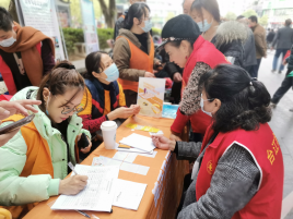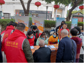 在洋中街道便民活动广场上,数十家公益组织摆设摊位,为社区居民提供不同的服务内容。教师党员们和福建省春雨扶贫济困公益事业发展中心的志愿者们,共设摊位一起开展“黄手环”助老服务。一块小小的黄手环,以“二维码的形式”承载有走失风险的老人基本信息和其看护家人的联系方式,信息系统全国同步。