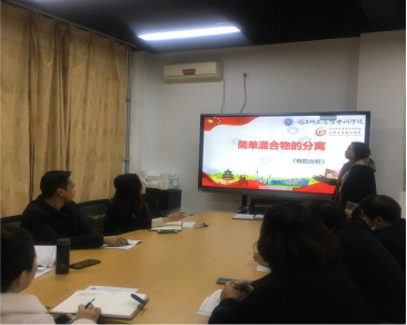 会上,系主任陈宗保及食品制药教研室主任林媛先后分享课程思政教学经验。陈宗保主任以《有机化学“课程思政”元素的设计》为题,指出要深挖有机化学课程内容的思政元素,将思政内容和知识内容深度融合,通过将“培养创新精神、科学精神,树立正确的人生观和价值观”“深植家国情怀,培养文化认同,增强民族自信”“科技的人文情怀,启发科学兴趣,培养职业素养和社会责任感”“启发科学思维,树立严谨的科学态度”等思政元素与课程内容的交融,实现高等教育既“教书”,又“育人”的目的。林媛老师以《有机分析——简单混合物的分类》为题,介绍了课程思政教学设计的思路及方法。通过案例专题、研究探讨、参与互动、问题启发、实验实践协同式教学,在潜移默化中实现专业课程价值观念传递和立德树人的功能。