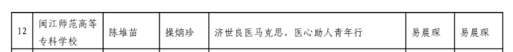 由易晨琛老师指导的征文演讲作品《济世良医马克思、医心助人青年行》荣第四届福建省高校大学生主题征文和微演讲比赛优秀奖。