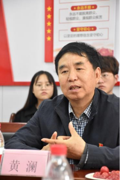 随后,两位老党员与现场师生进行了深入交流。18行政管理陈正鹏表示,大学生要珍惜当下,努力学习,奋发有为,在今后的工作生活中,他会以老党员为榜样,做一名合格的党员。20行政管理2班程宏翔同学说:“我是一名班委,我希望自己在做好为同学们服务的基础上,去为更多的人服务。”19社会工作林志极同学认为,作为入党积极分子,更应该发挥自己社工专业的助人品质,投入到为人民服务的实践中去。19行政管理1班杨舒晴同学则表示,自己对加入中国共产党有着强烈的渴望,党的规章制度使她对党有一种神圣的向往……同学们踊跃发言,现场气氛热烈。两位老同志认真听取大家发言,不时插话交流。陈薇刚指出,大学是做学问的地方,大学生要有强烈的求知欲望,多看多学多练,不断精进专业,增长才干,练就过硬本领,才能担负时代使命,以真才实学服务人民。黄澜谈到,大学生只有努力学习掌握科学知识,提高内在素质,以匠心致初心,才能在未来工作岗位中有所作为,维护好闽江师专的金字招牌。