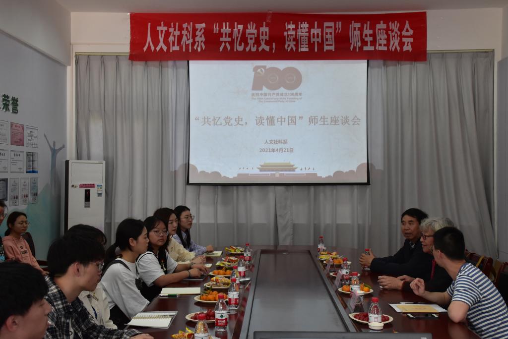 为学习贯彻习近平总书记在党史学习教育动员大会上的重要讲话精神,扎实推进党史学习教育,激发学生党史学习热情,4月21日,人文社科系联合校关工委组织开展了“共忆党史,读懂中国”师生座谈会。此次活动邀请了陈薇刚、黄澜两位退休教师党员与师生代表进行了深度交流座谈,座谈会由人文社科系学生党支部书记叶懿蛟主持。