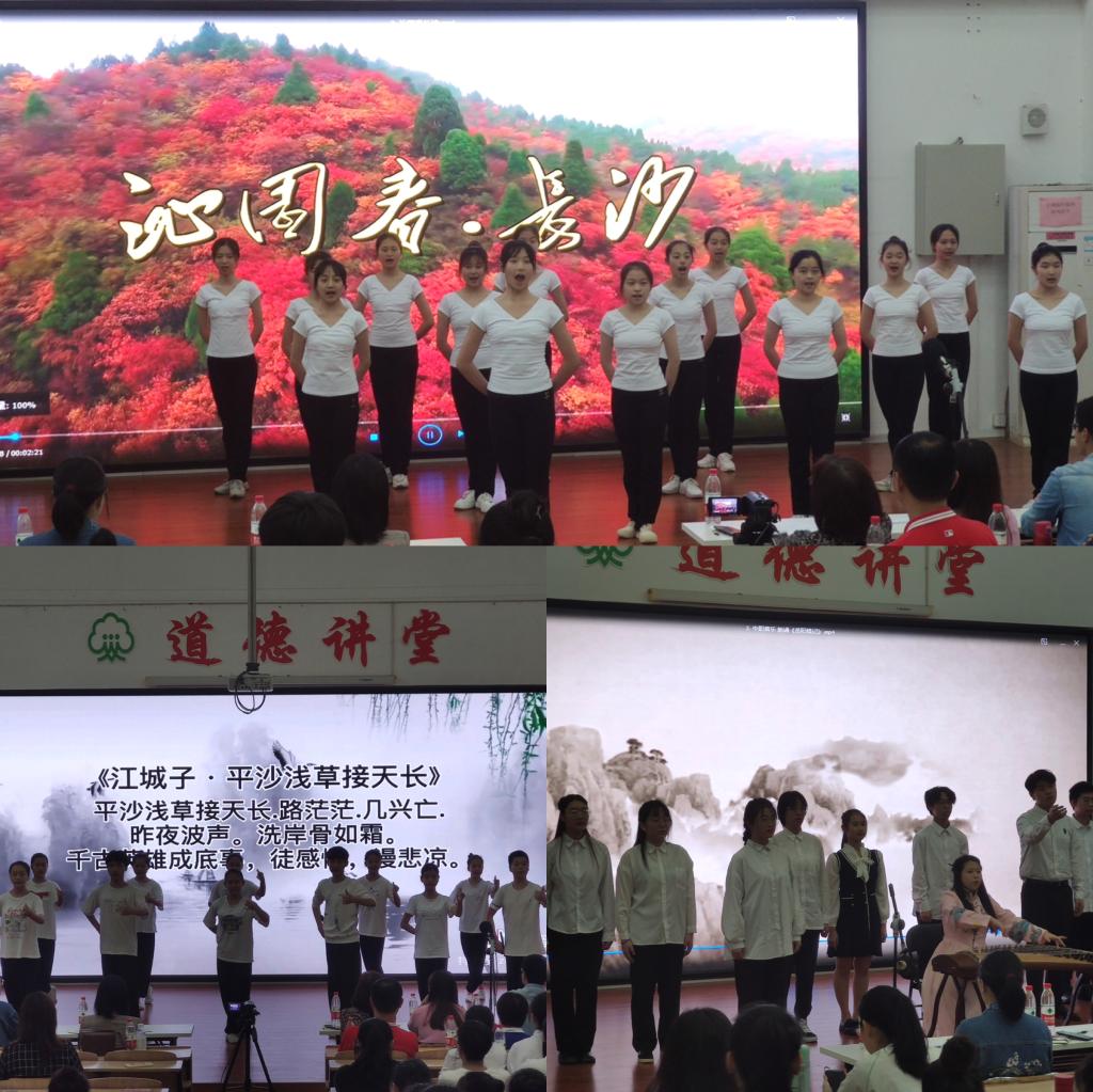本次比赛以红色诗词集体朗诵为主要形式,共有11个班级参赛,每个班级诵读两首红色经典诗词。比赛中,每个班级结合自己的专业特长,分别以舞蹈、戏曲、器乐加朗诵的形式,演绎了《沁园春·雪》《沁园春·长沙》《大江歌罢掉头东》《蒋桂战争》《西江月·井岗山》等22首红色诗词。同学们以饱满的激情,讴歌建党百年光辉历程和辉煌成就,唱响了爱党爱国爱社会主义的主旋律。