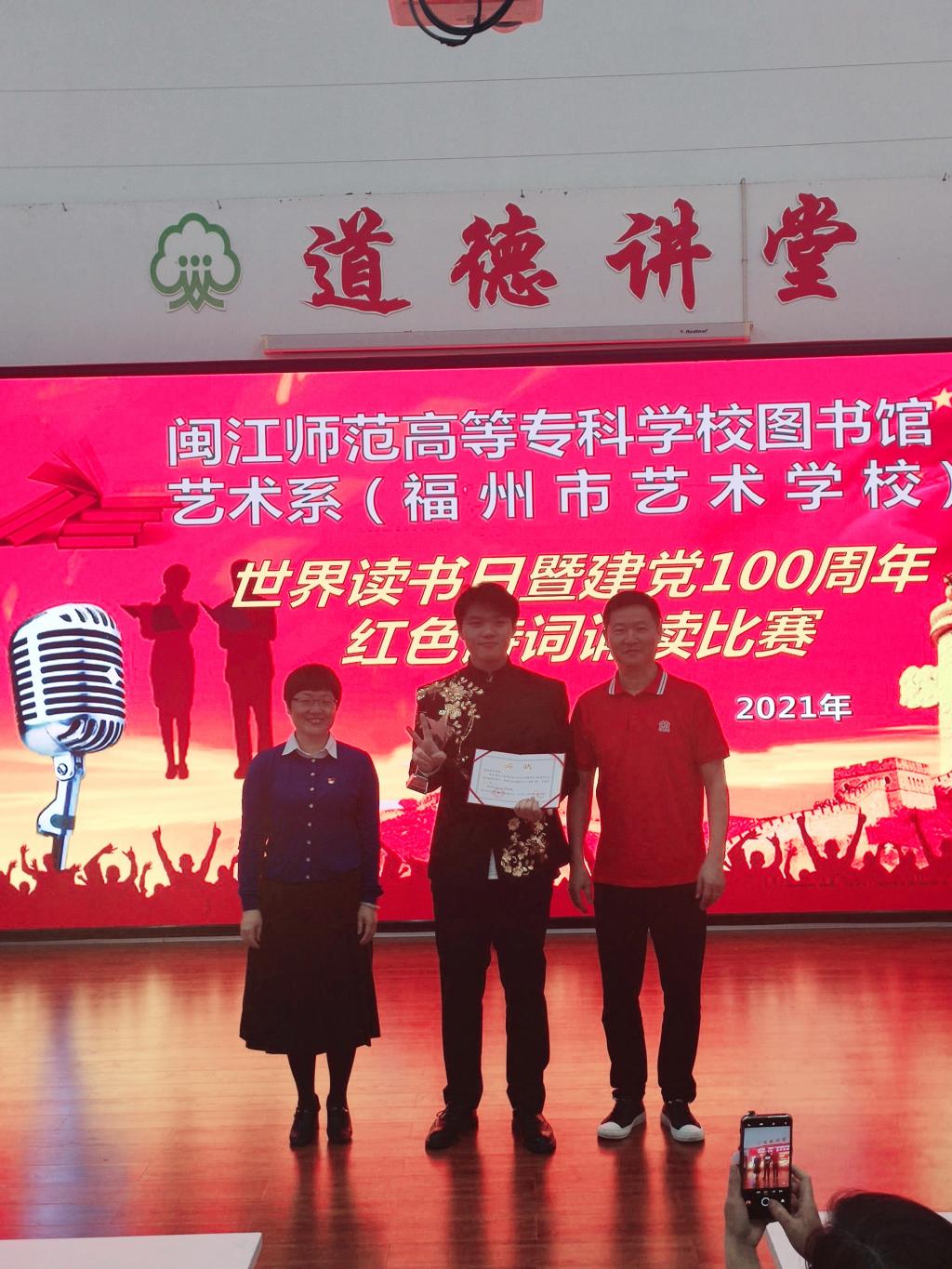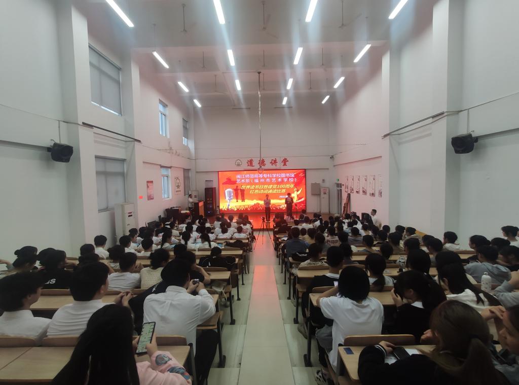 为深入推进党史学习教育,4月28日下午,校图书馆、艺术系(福州市艺术学校)在甘蔗校区开展2021年世界读书日暨庆祝中国共产党成立100周年红色诗词诵读比赛。校图书馆馆长董志强、艺术系党总支书记江柳青、艺术系党总支副书记林萍及艺术系(福州市艺术学校)甘蔗校区全体师生、校图书馆相关工作人员参加。