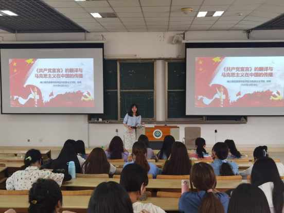 5月14日,马克思主义学院旗山大讲坛在旗山校区开讲,邹萌老师以“《共产党宣言》的翻译与马克思主义在中国的传播”为主题为学前教育系的学生做主题讲座。