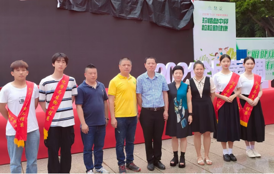 2021年5月17日到23日是第七届“全民营养周”。5月17日上午,省、市卫健委联合相关部门在福州南公园举办以“合理膳食,营养惠万家”为主题的启动仪式,化学与生物工程系副主任张瑛、教研室主任林媛带领四位学生参与了宣传活动。