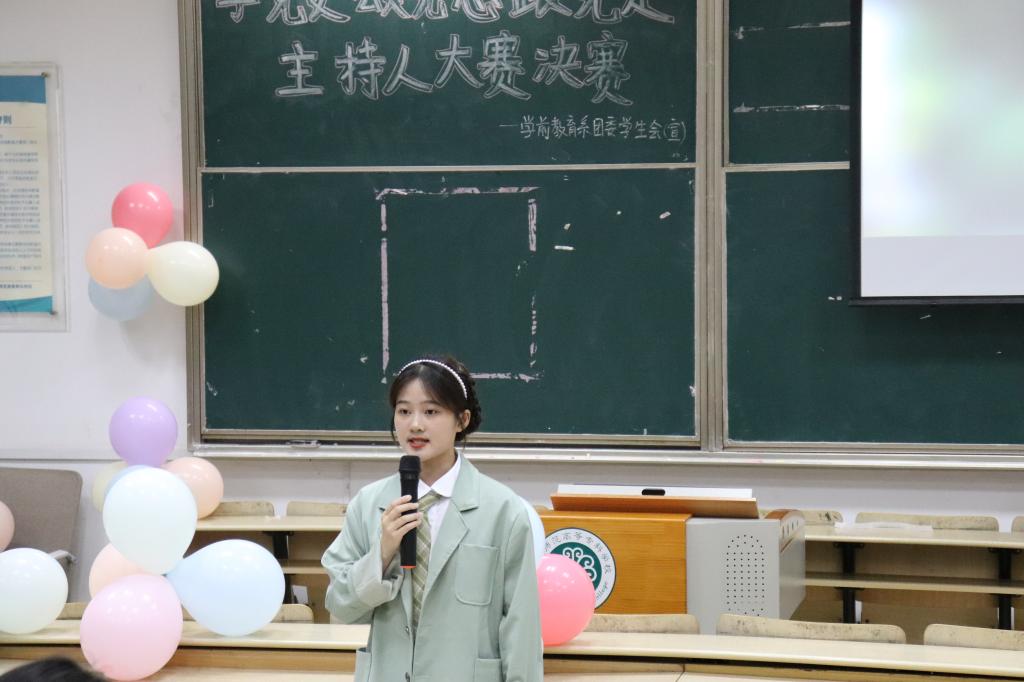 为庆祝中国共产党建党100周年,弘扬红色文化,展现我系学子青春风采,增强学子永远跟党走的信念,5月,学前系举办以“学党史,颂党恩,跟党走”为主题的主持人大赛。经过初赛、决赛的激烈比拼, 20级学前教育3班王怡飞、20级学前教育4班黄静怡等6位同学脱颖而出,分别获得一、二、三等奖。