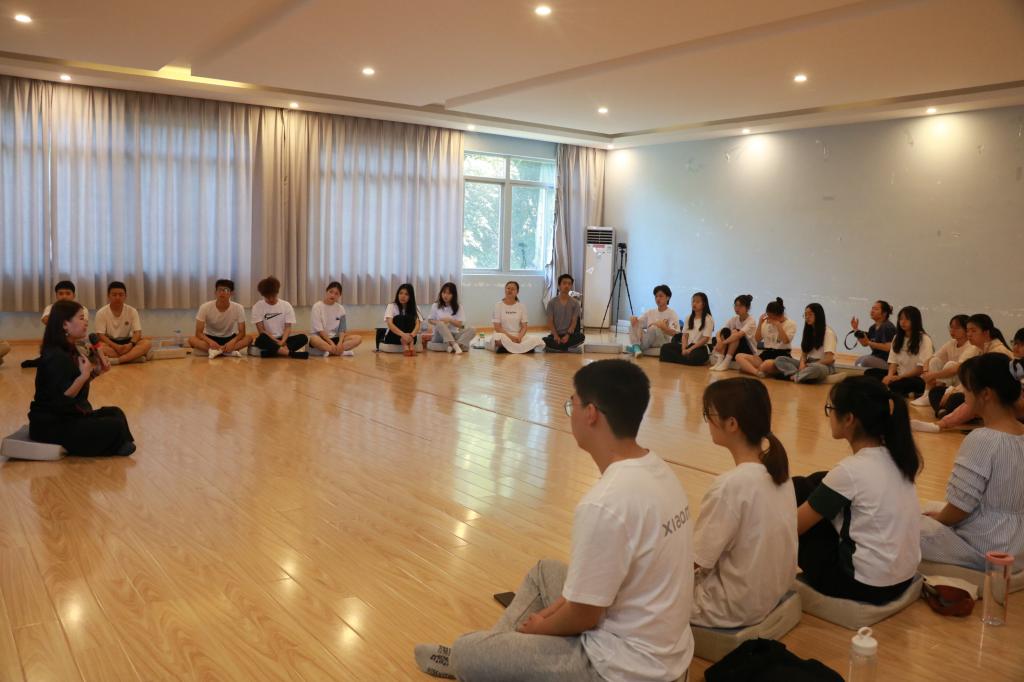 活动伊始,徐老师向同学们普及了舞动治疗的起源与发展和身体创伤的相关知识,让大家对课程相关概念有了初步了解。之后,徐老师通过镜像舞、十指连心舞、花开花合舞、“进攻—防御”模式练习等环节逐步帮助同学们打开身体、投入到课程体验中。为充分挖掘同学们的内在潜能与自我表达,徐老师要求大家跟随音乐律动,每一个人贡献一个在团体中被看见的动作,并进一步引导大家通过无声分组编舞来调动和融入团队力量。期间徐老师还现场演示了如何干预极度缺乏安全感个体的情绪崩溃,丰富了大家的实战经验,提升大家的专业认同。最后工作坊在大家真诚的祝福中拉下帷幕。