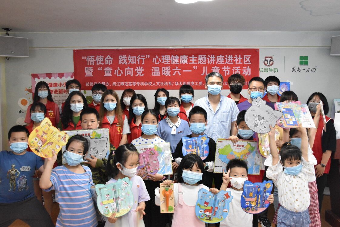 5月29日下午,我校与鼓楼区委文明办在左海科技大厦七楼举办了“悟使命,践知行”心理健康主题讲座进社区暨“童心向党,温暖六一”儿童节活动。鼓楼区委文明办主任范文毅,我校人文社科系副主任(主持工作)陈勤、心理教研室主任谢姗姗莅临现场指导。