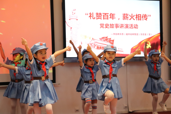 经过激烈的初赛,共有11个节目进入本场党史故事讲演决赛。比赛现场精彩纷呈,诗歌朗诵、情景话剧、舞蹈、合唱等丰富多彩的节目,为观众们讲述了百年党史中那些可歌可泣的故事。随着选手们声情并茂的讲述和表演,一次次将观众们带入到刘胡兰、雷锋、焦裕禄、邓颖超等优秀共产党人的光辉岁月。精彩的节目充分展示了学前系学生扎实的专业技能、附属幼儿园老师们良好的职业素养以及小朋友们的童真童趣。