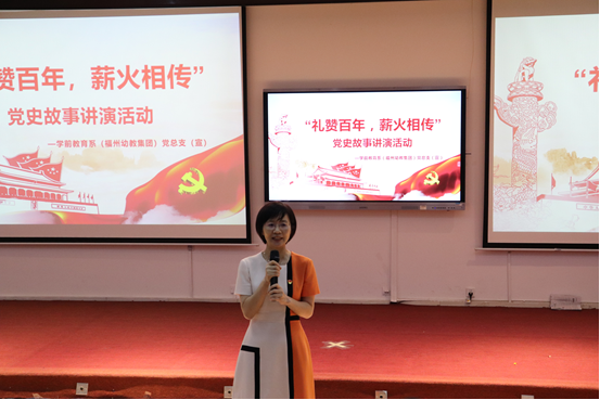 6月16日晚,闽江师范高等专科学校学前教育系(福州幼教集团)党总支,开展了“礼赞百年,薪火相传”党史故事讲演活动,重温党的光辉历程,庆祝中国共产党成立100周年。党工部副部长、初教系党总支书记马梅铃、学前系(福州幼教集团)党总支书记吴春艳、学生处副处长郭静静、学前系副主任林毓君、福州幼教集团总园长吴敏及总支师生500多人参加了本次活动。