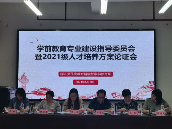 为了更好地适应学前教育行业发展的新形势,助推学前教育专业的建设与发展,加强学校与幼儿园、教学与实践的紧密结合。2021年6月30下午在综合楼8楼会议室召开了闽江师范高等专科学校学前教育专业建设委员会暨2021级人才培养方案论证会。会议主题是修订2021级三年专及3+2五年专学前教育专业培养计划。会议由学前教育系副主任陈闽光老师主持。