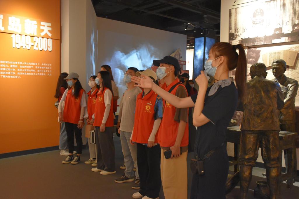 社会实践小组赴平潭县国彩村旧电影院、吴国彩故居、大坪村主题党日纪念馆、将军山、江继芸纪念馆寻访江继芸、吴国彩、曾焕乾等革命烈士故事。大坪村主题党日纪念馆全景式呈现了平潭县革命史、建设史和开发开放史。翻开风云激荡的红色篇章,一段段历史文字、一张张珍贵的照片、一件件历史实物的展示,带领小组成员仿佛穿越时空,回到艰苦奋斗的峥嵘岁月,让同学们深切感受党的伟大征程和平潭老一辈革命人无私奉献、前仆后继的革命精神。在鲜红的党旗下,参加活动的党员们重温了入党誓词,再一次接受了精神的洗礼。