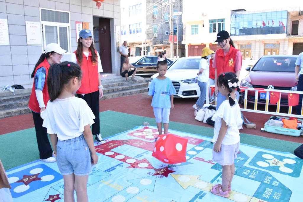 9日下午,围绕“百年记忆青年寻访,千秋伟业薪火传承”的主题,实践小组在国彩村开展了一次党史学习传承活动,邀请了当地村民小朋友一起参与“重走长征路”、“党史飞行旗”、“珠行千里”等多个趣味党史学习小游戏。起初,小朋友们在面对一群穿着志愿服的实践小组伙伴时,还表现得十分拘谨,后来经过一起配合完成游戏任务,便慢慢地熟络了起来。通过游戏的形式,让小朋友们对于党史有了初步认识。最后,实践小组和国彩村的小朋友们唱起了儿歌,正如歌里唱的那样:“童心向党,童心向党,好好学习,天天向上……”在这样一片充满红色文化气息的土地上激发小朋友对于红色文化学习的兴趣。