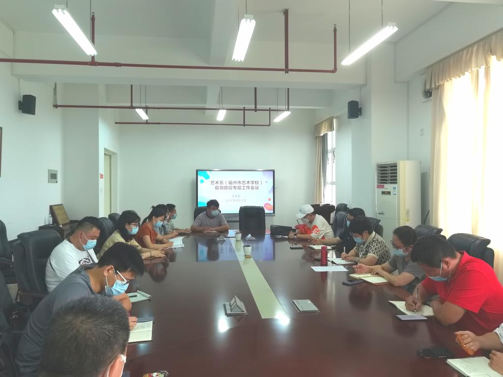 9月12日下午,艺术系(福州市艺术学校)在旗山校区七楼会议室召开疫情防控专题工作会议。艺术系全体党政联席会成员、总支支委、旗山校区辅导员、班主任及甘蔗校区各部门负责人出席。会议由艺术系党总支书记江柳青主持。