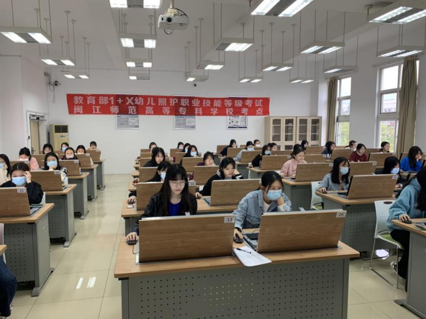 2021年10月23日至24日,由学前教育系承办的教育部1+X幼儿照护职业技能等级考试在闽江师范高等专科学校考点顺利开考。19级学前教育专业98名同学参与了此次考试。
