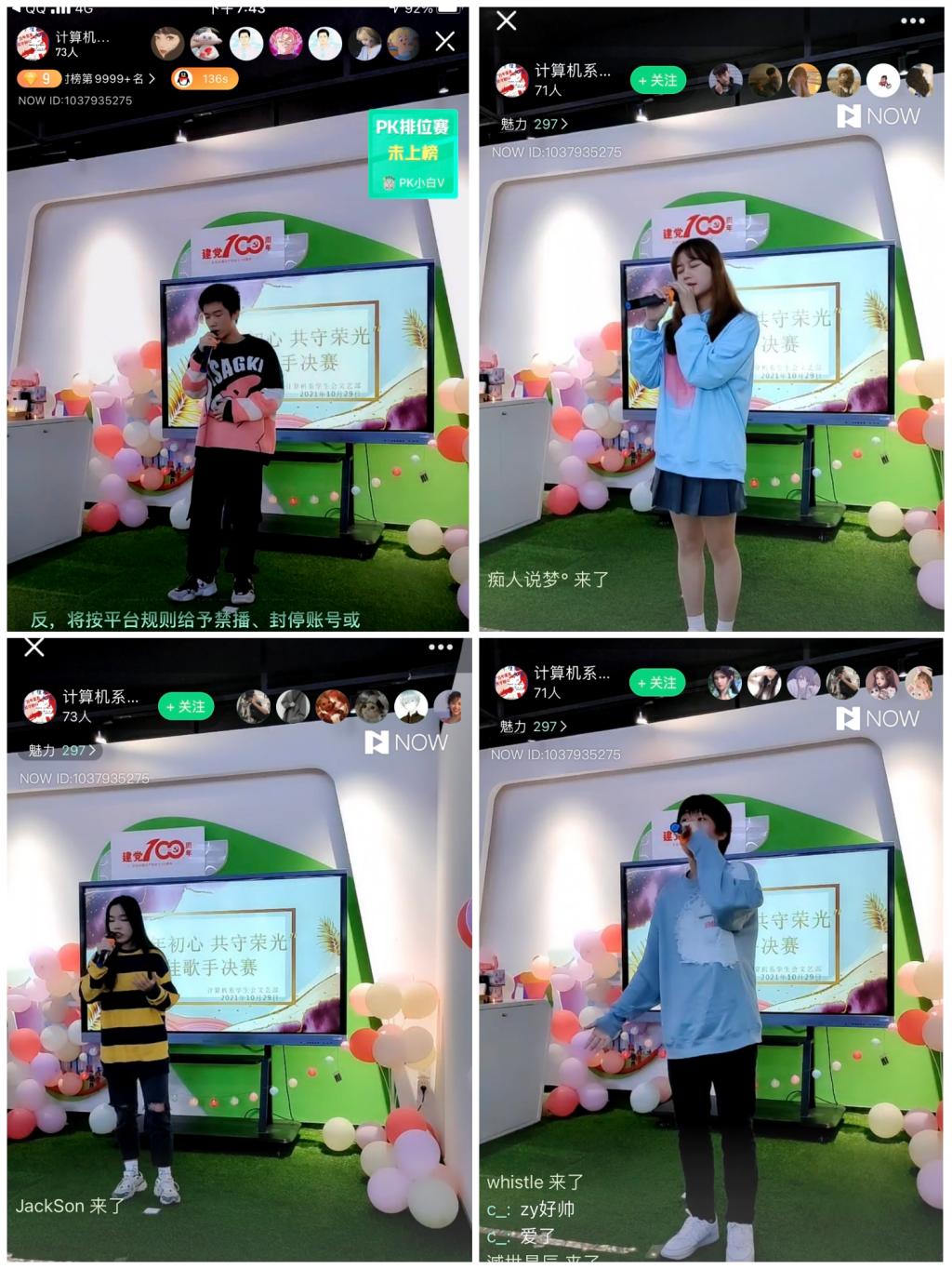 为加强校园精神文明建设,活跃校园文化氛围,值此纪念中国共产党成立100周年之际,10月29日晚,计算机系举办了以“百年荣光,共守初心”为主题的校园“十佳歌手”决赛。计算机系副主任冯光,团委书记、全体辅导员及学生代表参加了本次活动。本次决赛采取线上同步直播的方式,让其他师生一同观看了决赛盛况。