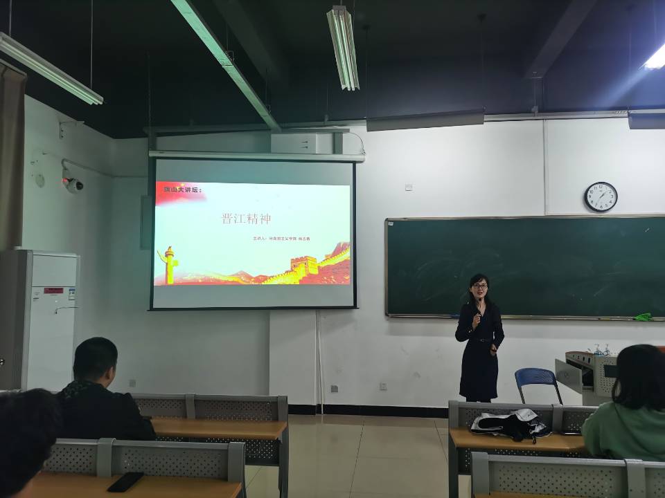 11月3日,马克思主义学院旗山大讲坛在仓山校区3号楼504开讲,林志香老师以《晋江精神》为主题,为仓山校区2021级学生代表做主题讲座。