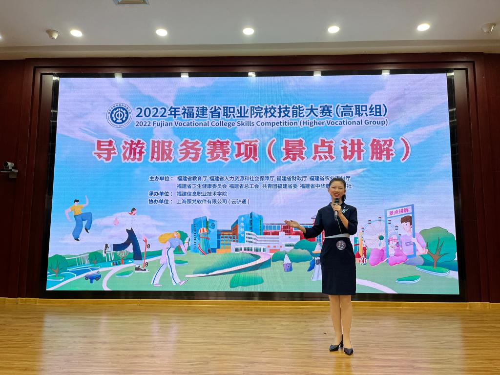 2021年12月29日至31日,2022年福建省职业院校导游服务技能大赛(高职组)导游服务赛项在福建信息职业技术学院隆重举行。本赛项为个人赛,全省共66名选手参加。我校导游专业朱佳虹、李铭煌两位同学代表学校参加此次比赛,分别斩获一等奖、二等奖各一项。