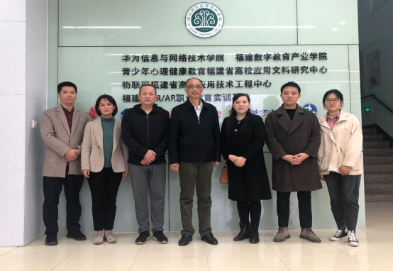 12月13日下午,福州英华职业学院考察团在信息技术系副主任徐静带领下一行4人来校考察交流。计算机系主任李瑞兴、副主任冯光,虚拟现实技术教研室全体老师在仓山校区2#201B会议室热情接待了考察团一行。