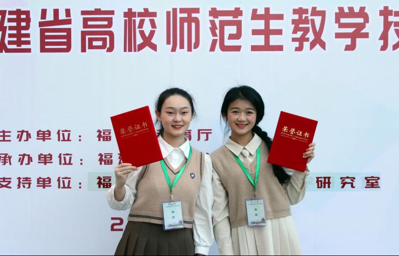 在刚刚结束的第八届福建省高校师范生教学技能大赛中,学前教育系学生叶贞瑶、蒋亚玲经过紧张的角逐,分别斩获学前教育组的一等奖和二等奖,创下了学前教育系选手连续三年斩获省赛一等奖的新纪录。