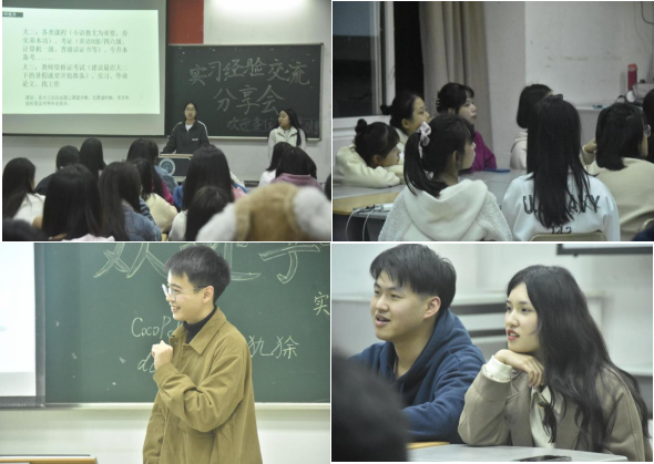 在20、21级同学们求知的目光中,学长学姐们通过分析在实习过程中的经典案例、实习中得出的经验等等来为同学提供指导,也为同学们解决困惑。在自由提问阶段,大家就如何编写教案、如何掌握高效率学习方法以及在学习过程遇到方方面面的问题如何解决等等问题向学长学姐寻求意见建议,学长学姐们耐心地为同学们做了解答,还分享了各种学习资料,例如常用的教育类网站、公众号,常用的免费PPT、简历模板等等,为同学们在迷茫中点亮了一盏明灯。