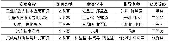 2022年福建省职业院校技能大赛高职组赛项机电工程系获奖情况一览表
