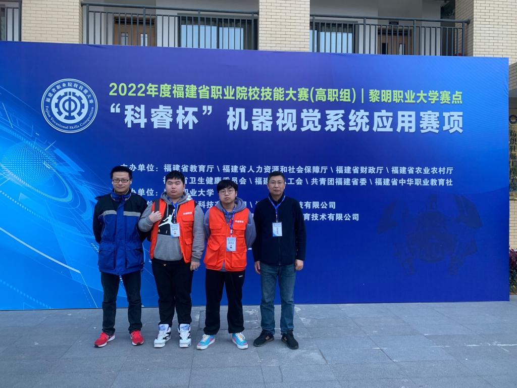2021年12月25日,2022年福建省职业院校技能大赛(高职组)机器视觉系统应用赛项在黎明职业大学举行,来自福建省14所高职院校的28名选手同台竞技。参赛选手以现场操作的方式,根据赛场提供的设备、资料和赛项任务书,完成综合赛项任务。由张翔、林云老师指导的工业机器人专业学生王善斌、纪玮扬获团体赛二等奖。
