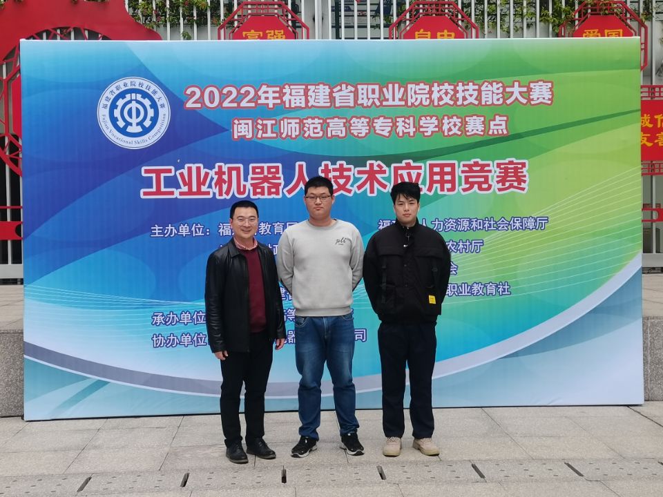 2022年1月7日至9日,2022年福建省职业院校技能大赛(高职组)工业机器人技术应用赛项在闽江师范高等专科学校举行,来自福建省14所高职院校的28名选手同台竞技。参赛选手需要完整完成工业机器人工作站智能控制系统的硬件连接、模块测试、程序设计和系统联调等任务。由张翔、陈烨强老师指导的工业机器人专业学生江昱志、郑鑫磊获团体赛一等奖。