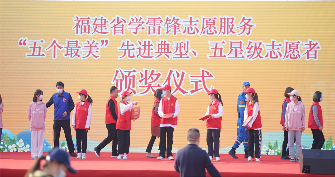 到场的嘉宾们为福建省学雷锋志愿服务先进典型、五星级志愿者和福建省志愿服务项目大赛获奖项目代表颁奖,为福州市首批“长者食堂”共建单位及福州市新时代文明实践首批示范阵地等颁发了证书和牌匾。