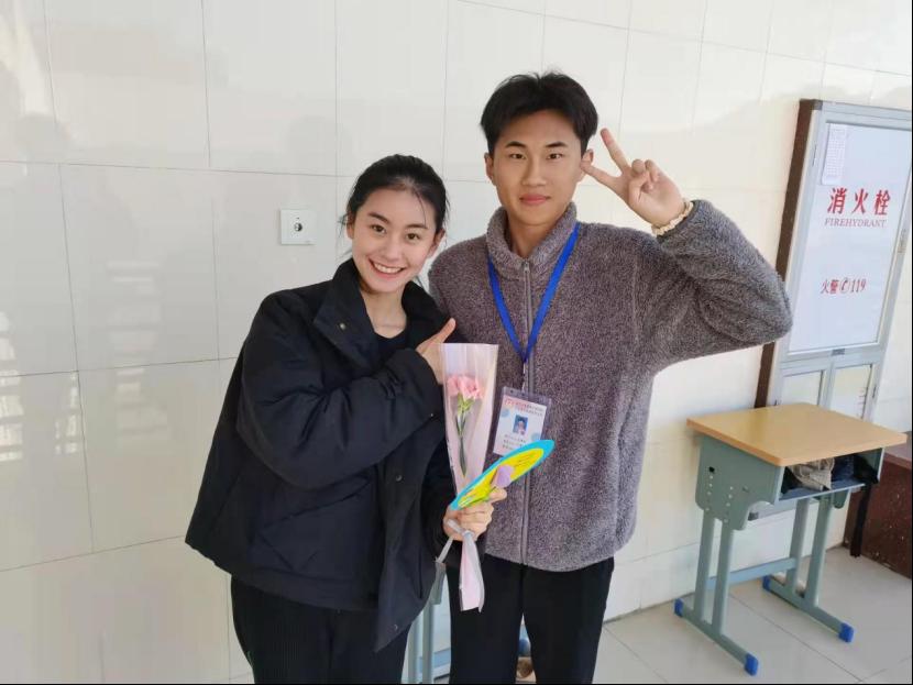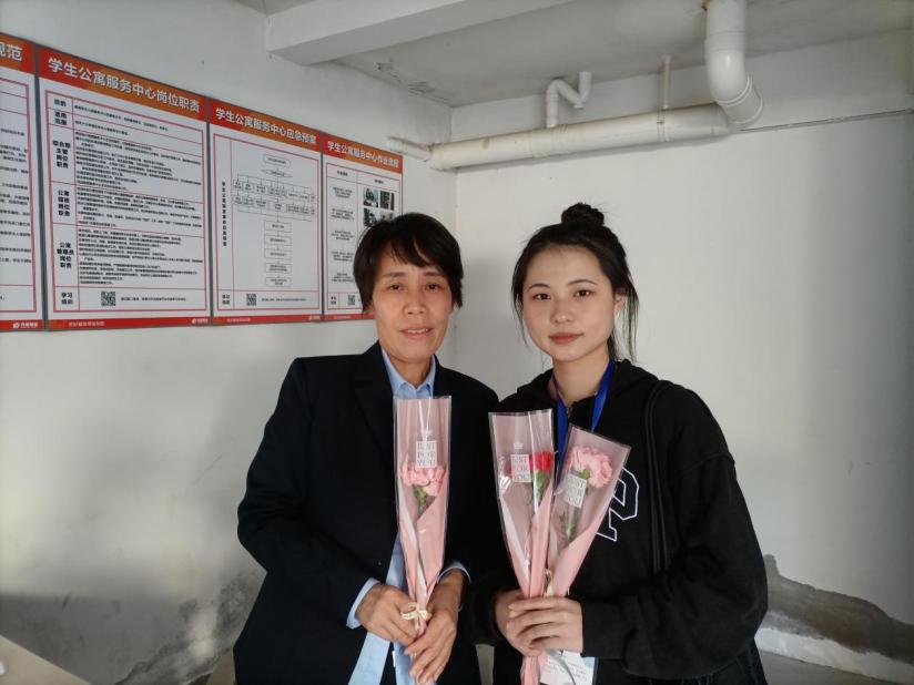 随后,同学们走进校园,为医务室的医生们、宿舍楼的楼管阿姨们、食堂阿姨们送上鲜花。其中,有位楼管阿姨收到鲜花后,颇为感动,表示自己是第一次收到鲜花,她对同学们说“谢谢你们,准备礼物也没有忘记我们!”