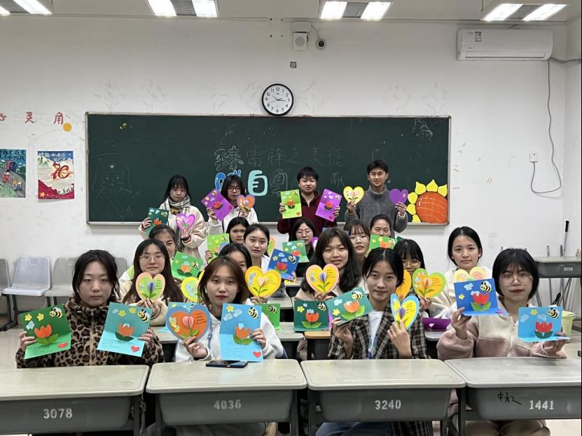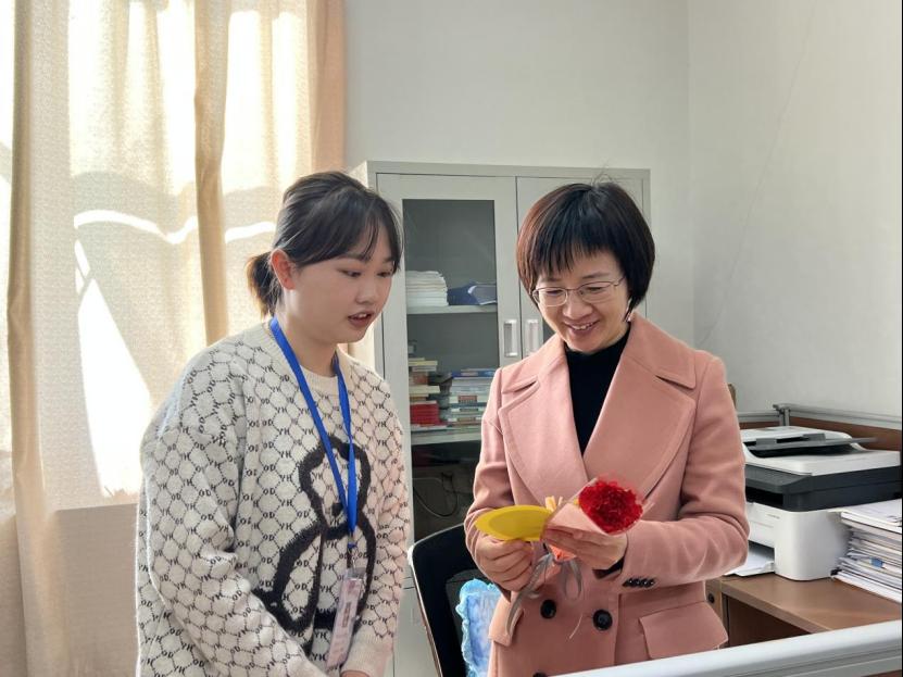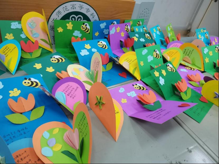 阳春三月,轻风拂面,3月8日,学前教育学院的同学们在劳动实践周中发挥专业技能,精心制作手工贺卡、包装鲜花,用自己的劳动成果为学校的女教师、楼管阿姨、食堂阿姨们送上了节日的祝福。