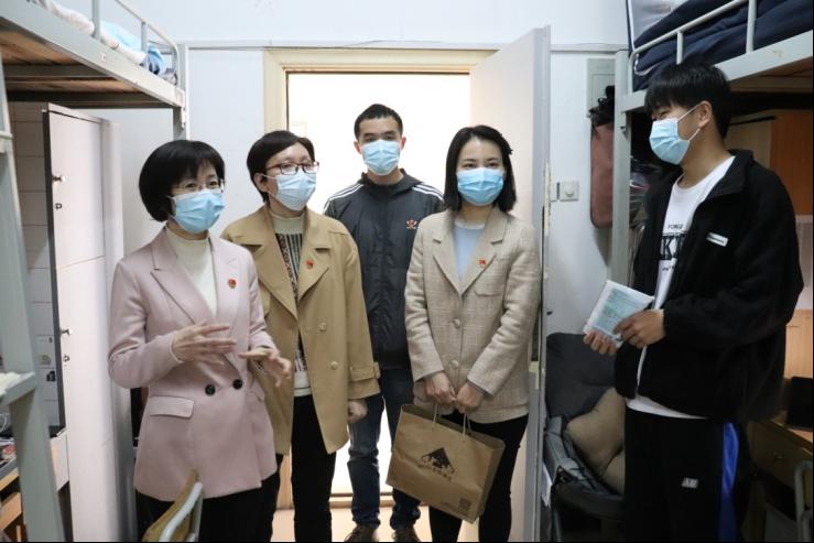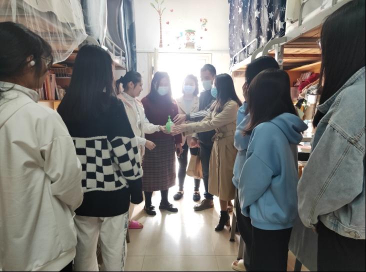 线上教学开始以后,教师党员们走访每一间宿舍,发放洗手液、口罩等防疫物资,细致询问同学们的学习及生活情况,关注同学们的身心健康状况,让同学们在线上学习期间做到学习和放松两不误。此外,他们也与校外实习的同学、因疫情不能返校的同学进行点对点的谈心谈话,打消同学们的顾虑,增强大家战胜疫情的勇气和信心。