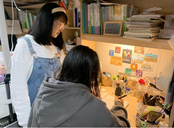 学生党员发挥先锋模范作用,组建了学业帮扶团队。除了线上解答以外,他们不定期地下到对接宿舍,根据所反馈的学业问题有针对性地进行解答,并分享一些学业提升的方式方法。例如,对幼儿舞蹈的编排、手工作品的制作、弹钢琴的技巧、片段教学的细节等等,他们主动把自己的经验传授给大家。学业帮扶的对象不仅局限于低年级的学弟学妹,也包括本年级的同学,体现了帮扶对象的全面性。
