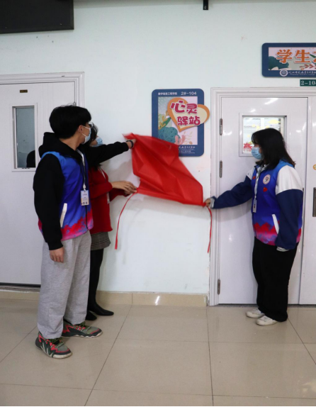 学生党支部书记江秀冬介绍了启用“学生之家”和设立“心灵驿站”的目的和意义。他说到,“学生之家”的启用将成为学院充分发挥学生干部先锋模范作用,打造学生自我教育、自我管理、自我服务、自我监督的交流新平台,也将是全面致力于服务学生的学习和生活活动场所。同时,通过设立“心灵驿站”,是学院落实党史学习教育“我为群众办实事”要求,为一线师生解决现实困难的一项具体举措,特别是疫情防控期间,开通24小时响应心理支持与咨询服务,为出现心理困扰的学生提供帮助,真正为学生排忧解难。