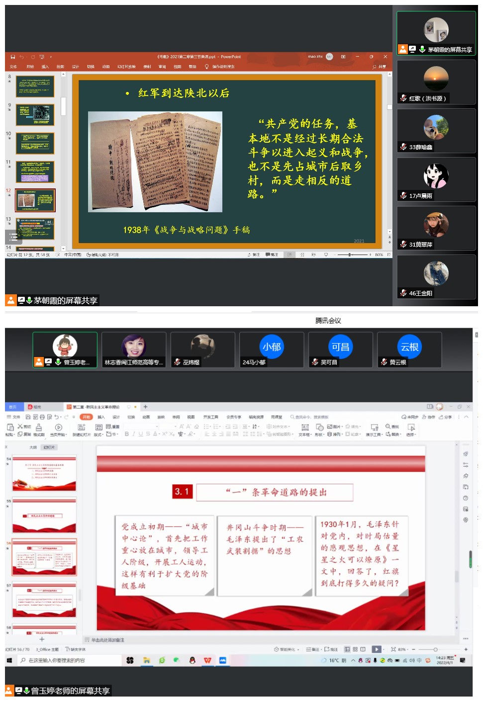 教学工作和宣传组开展线上教学,落实立德树人工作。全体教师党员积极投入防疫工作,立足网络思想政治教育主战场,精心组织开启“云端思政”线上教学,引导学生严格遵守校园防疫要求,理性对待网络舆论,正视生命教育;帮助学生更加坚定“四个自信”、弘扬中国精神、凝聚中国力量的信心和决心。