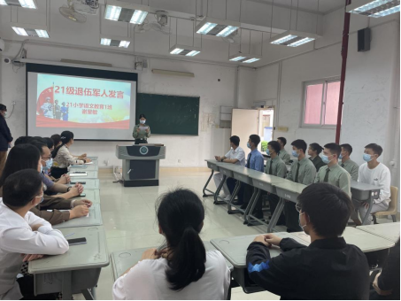 退伍士兵学生依次讲述了自己的军旅经历,及复学后的学习、生活情况,让我们感受到了“退伍不褪色”的精神力量。同时,他们也提到责任、自律、坚持、友谊的重要性,纷纷表示会一如既往地将部队的优良作风继续保持下去,用实际行动向身边同学做出表率,努力争当校园排头兵。