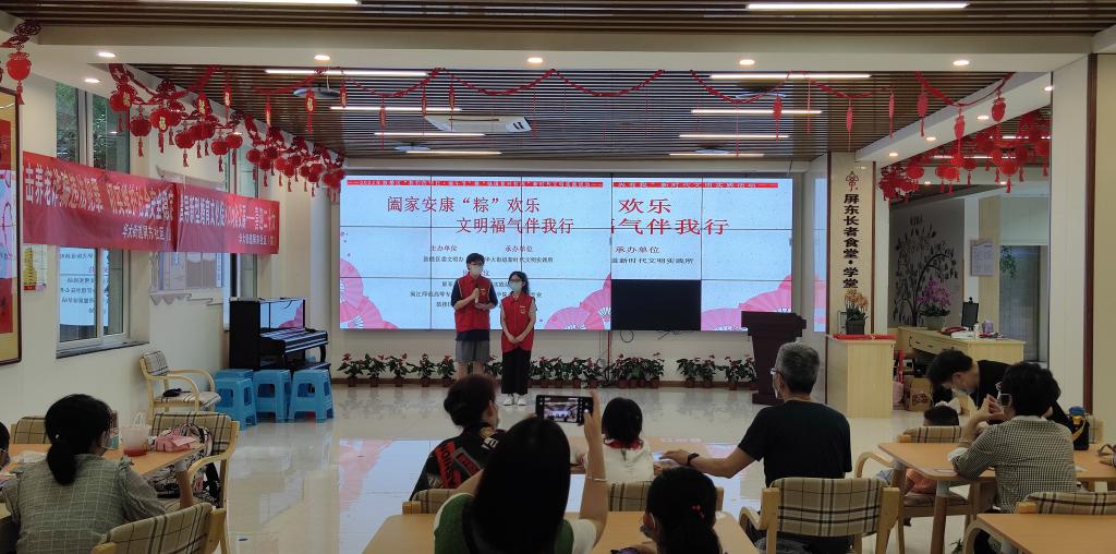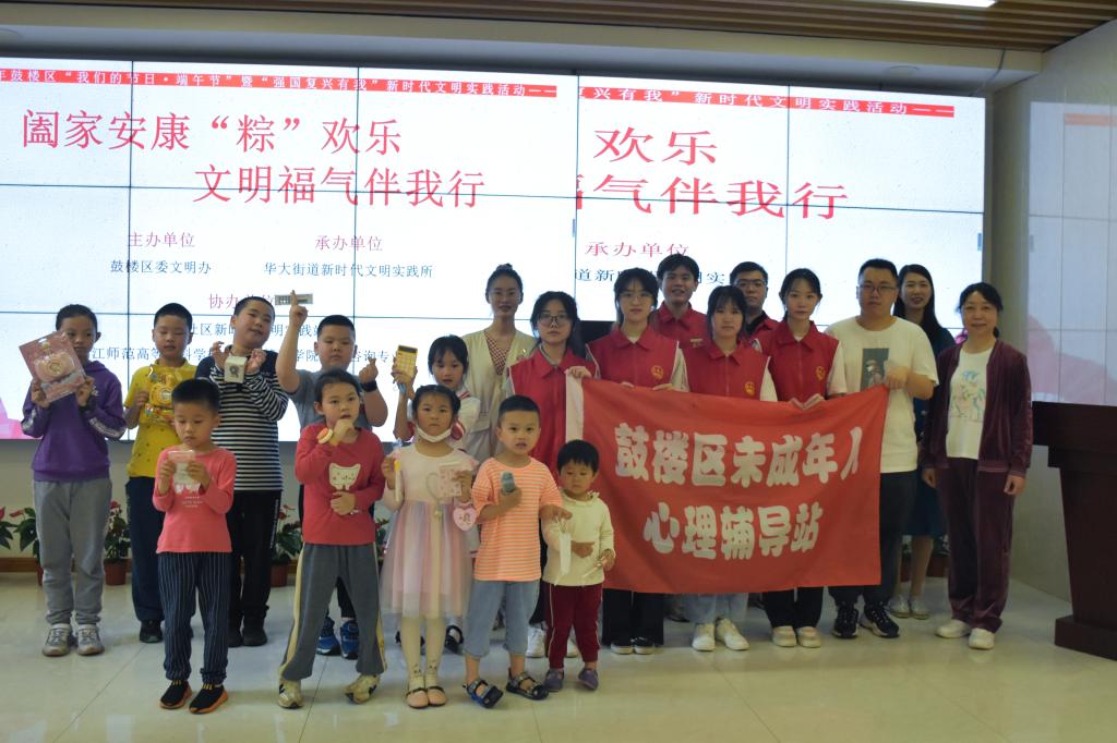 为弘扬传统文化,倡导新式过节、文明过节,共同践行新时代文明实践志愿服务精神。5月29日下午,屏东社区开展“我们的节日·端午节”暨“强国复兴有我”新时代文明实践活动。本次活动由鼓楼区委文明办主办,华大街道新时代文明实践所承办,屏东社区新时代文明实践站、我校人文与管理学院心理咨询专业、鼓楼区未成年人心理健康辅导站、长富牛奶共同协办。人文与管理学院副院长(主持工作)陈勤、心理专业教师张宝英带队参加。