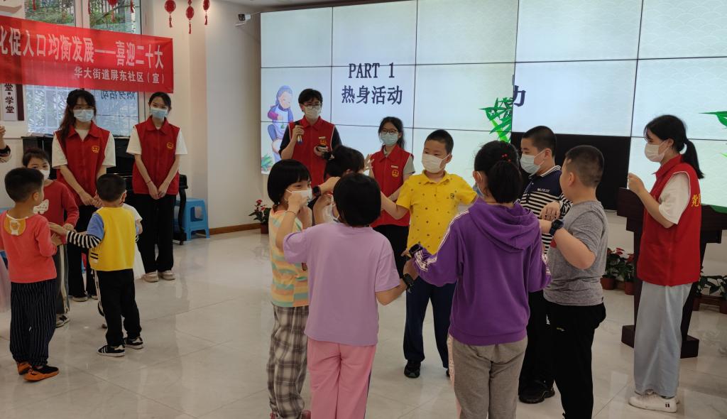 活动伊始,心理咨询专业王圣杰和张雅琳同学向各位家长与孩子介绍了本次活动的主题与流程,并带领孩子们进行热身活动。