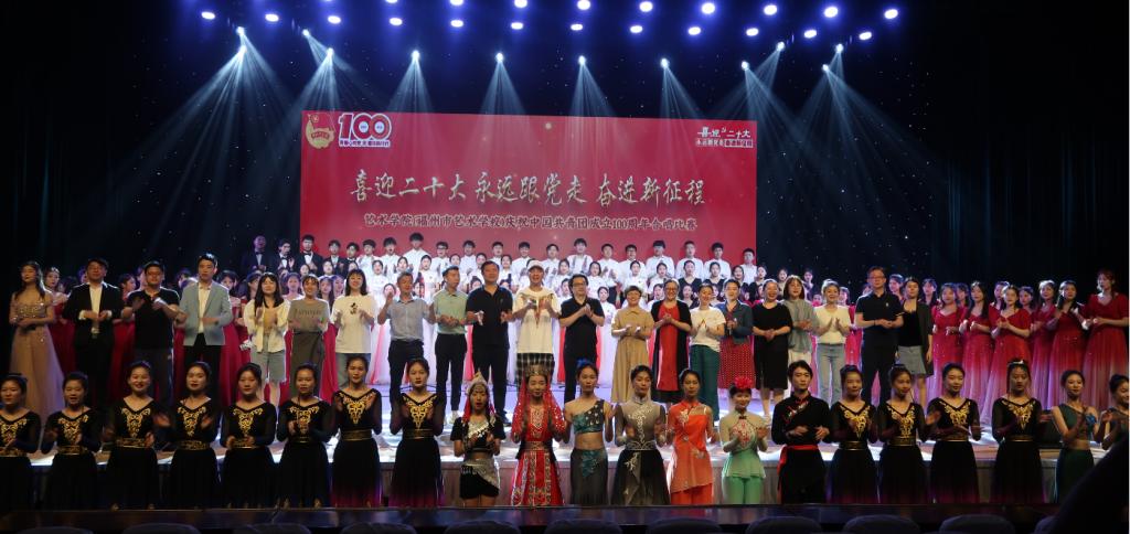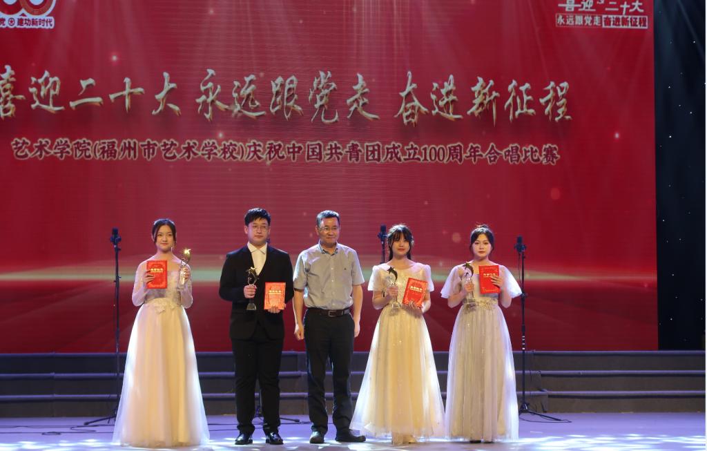 为庆祝中国共青团成立100周年,传承红色基因,以更加昂扬的姿态迎接党的二十大胜利召开,充分展现我院青年大学生积极进取的风貌,由艺术学院党委主办、学院学生支部和学院团委承办的“喜迎二十大、永远跟党走、奋进新征程”庆祝中国共青团成立100周年合唱比赛于6月1日晚在旗山校区学术报告厅举办,校党委书记陈荣生、副校长林旻、副校长谢敏峰、相关处室负责人,艺术学院党政领导班子成员、辅导员、班主任、班导师及全体学生出席。