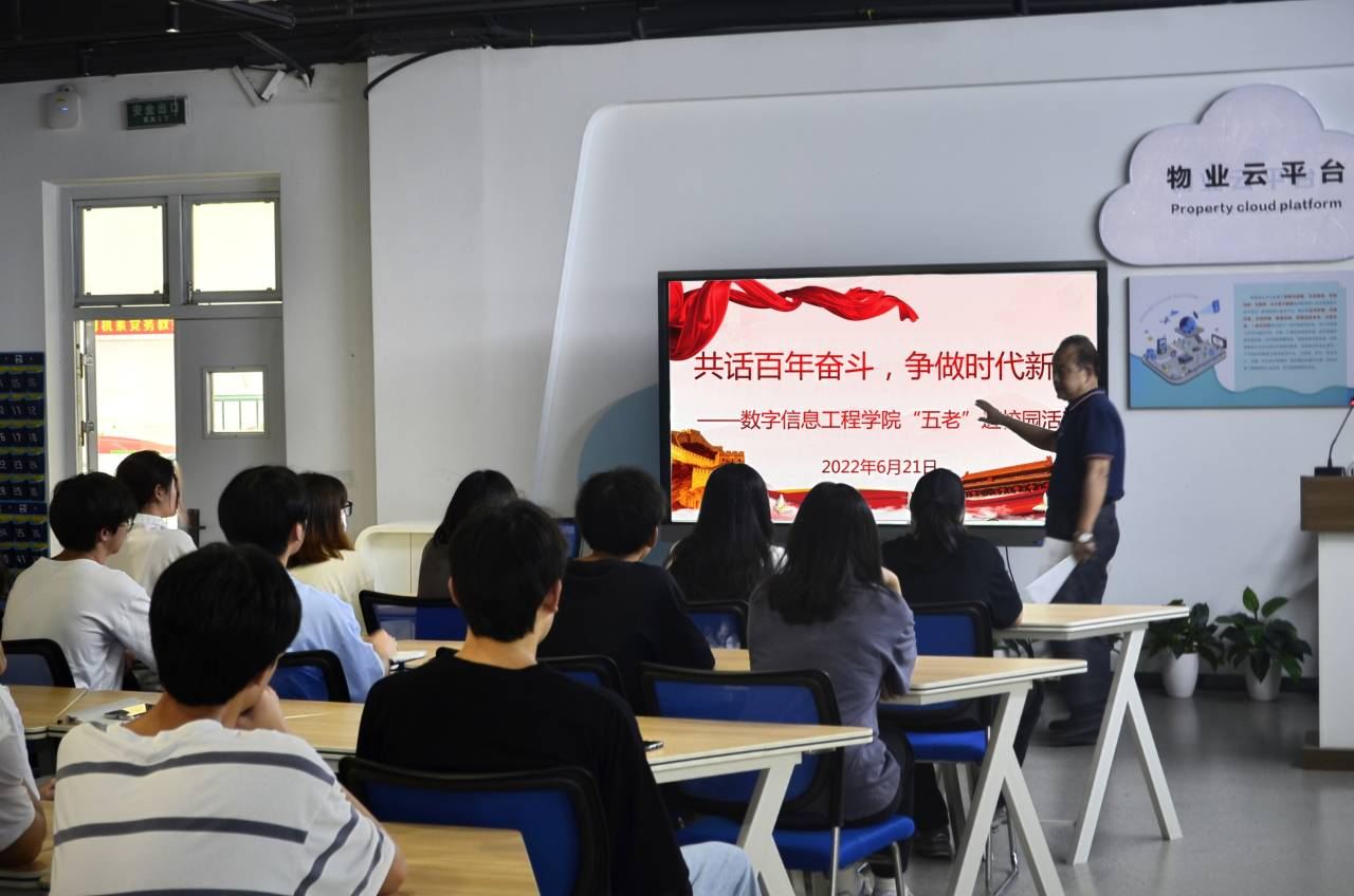 据悉,数字信息工程学院以“共话百年奋斗,争做时代新人”活动为抓手加强大学生党史学习教育。通过“五老”进校园活动,联手老一辈党员教师,关心下一代,引领青年教师、青年学生与之对结、交流,撰写文章、拍摄微视频,使学生在交流学习中潜移默化地受到教育,坚定听党话、跟党走的信念与决心。