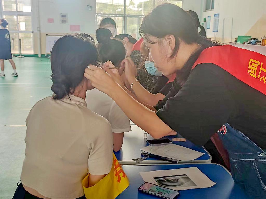 为弘扬传统文化,传播中医药知识,6月22日下午,闽江师专医护学院在福清校区体艺馆开展了“中医药文化进校园--耳穴压豆体验 ”活动。