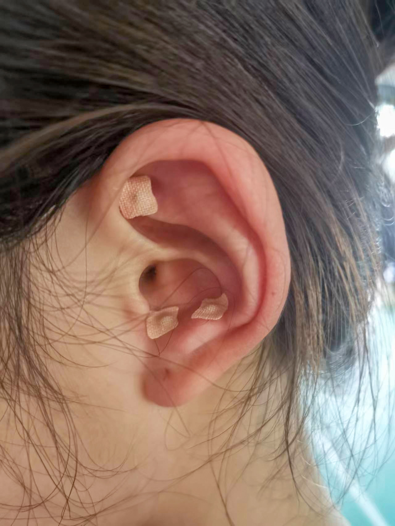 本次活动主要内容为耳穴按摩及贴压。活动现场志愿者们认真为参与活动的教职工及学生介绍耳穴原理,指导耳穴按摩,进行耳穴压豆贴敷。
