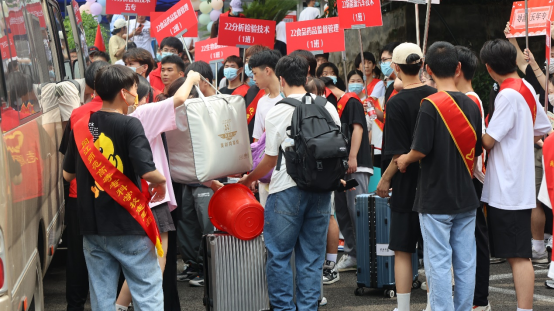 为迎接新生的到来,学院老师、志愿者们早早在自己的岗位上准备就绪,热情迎接每一位新生的到来。搬运行李、指引路线、办理入学手续……志愿者们始终用自己最饱满的热情迎接着朝气蓬勃的新生们。